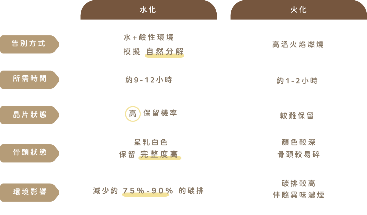 引進國際 Aquamation 水化技術——溫和、環保、無火煙。讓寶貝的骨骼保留得更純白完整。